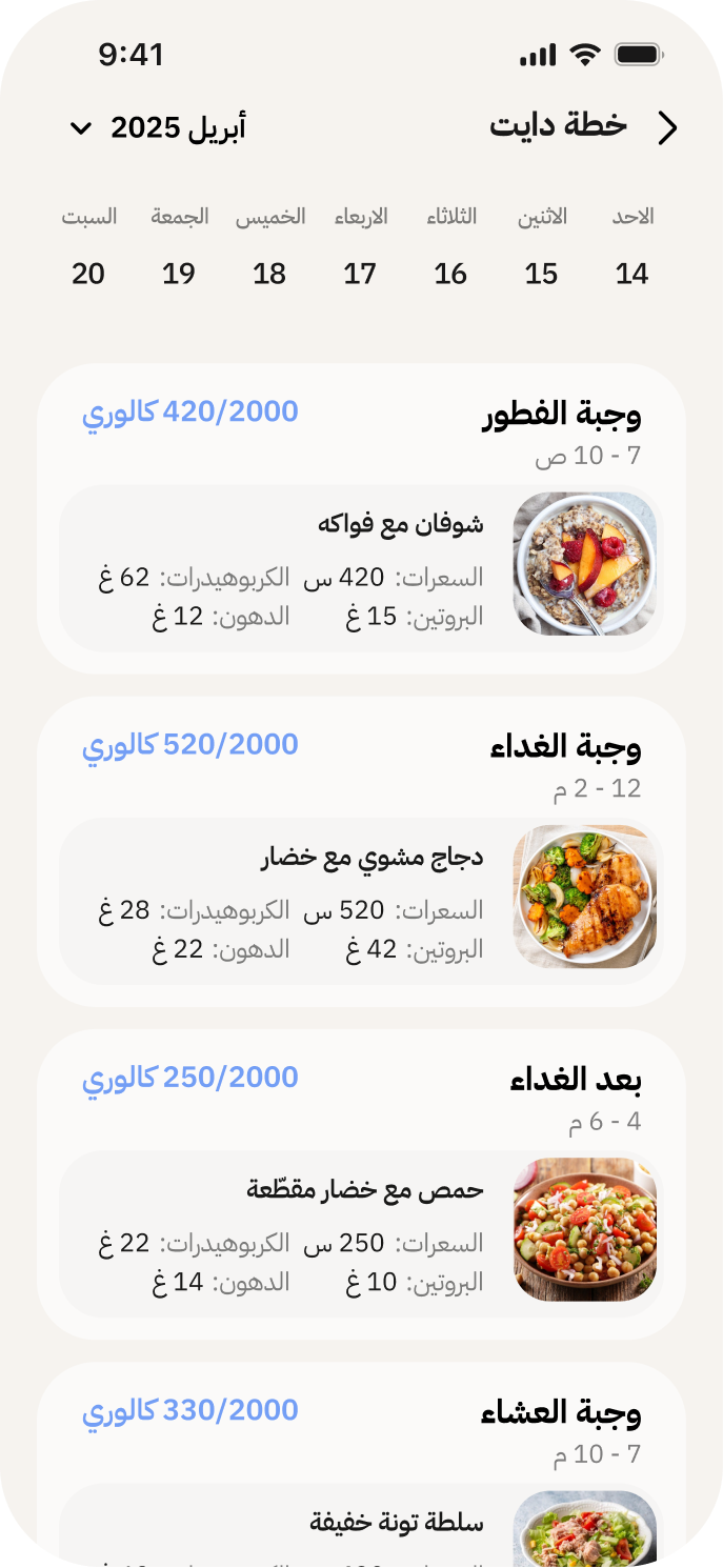 دعم متكامل للتغذية وبناء العادات الصحية عبر التطبيق
